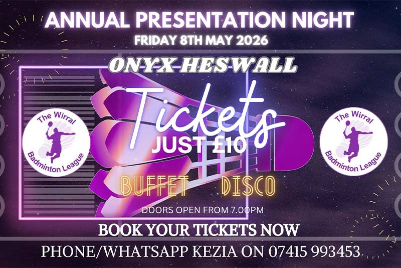 Advanced Presentation Night Tickets.Following the success of the 2025 event, Wirral Badminton League are delighted to confirm that the...